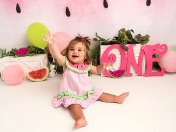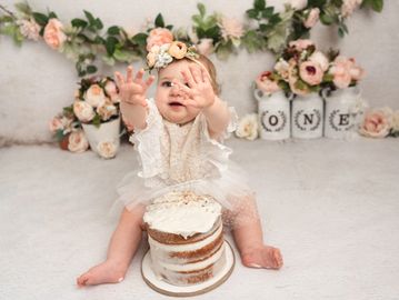 First birthday sessions are so much fun! I love planning them out. Props, backdrops and set ups are provided by the studio. Custom cakes are delivered and designed by Frosted occasions custom cakes based on preference and theme. Naked/plain white cakes $40. Themed cakes $50. Additional products and/or prints are available in addition to any package.